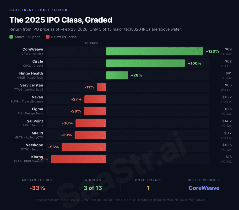 2025年に上場したB2Bおよびテクノロジー関連企業のIPO銘柄の殆どは現在、IPO価格を下回って取引されている。それでも、2025年は「IPOウィンドウ」が再開した年と言えるのだろうか?